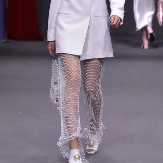 Women Bikini Bling Crystal Cover Up Tops Sexy Fishnet Hollow Out See Through Swimsuit Swimwear Tops Black White